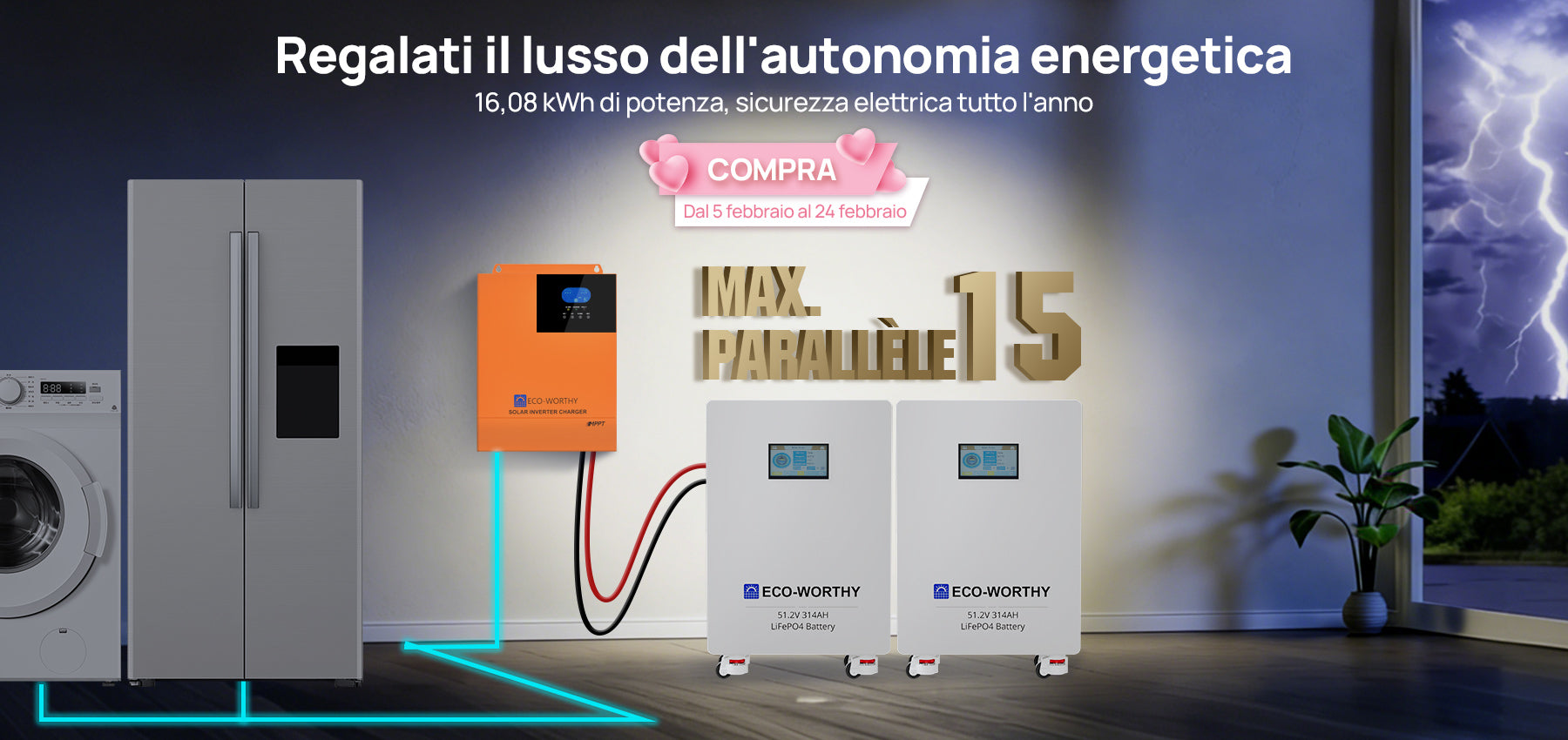 [Pre-vendita] Batteria al litio ECO-WORTHY 48V 314Ah — Uso domestico, montaggio a parete