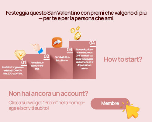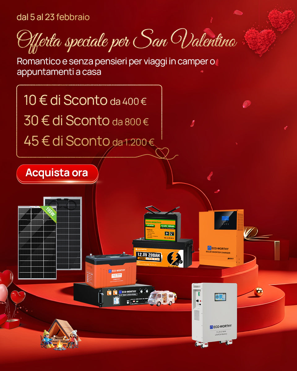 Batterie LifePO4 premium ECO-WORTHY Batteria al litio 12V 100Ah LiFePO4 Batteria al litio 12V 100Ah LiFePO4 con Bluetooth Batteria al litio 12V 50Ah LiFePO4 Batteria al litio 12V 30Ah LiFePO4...