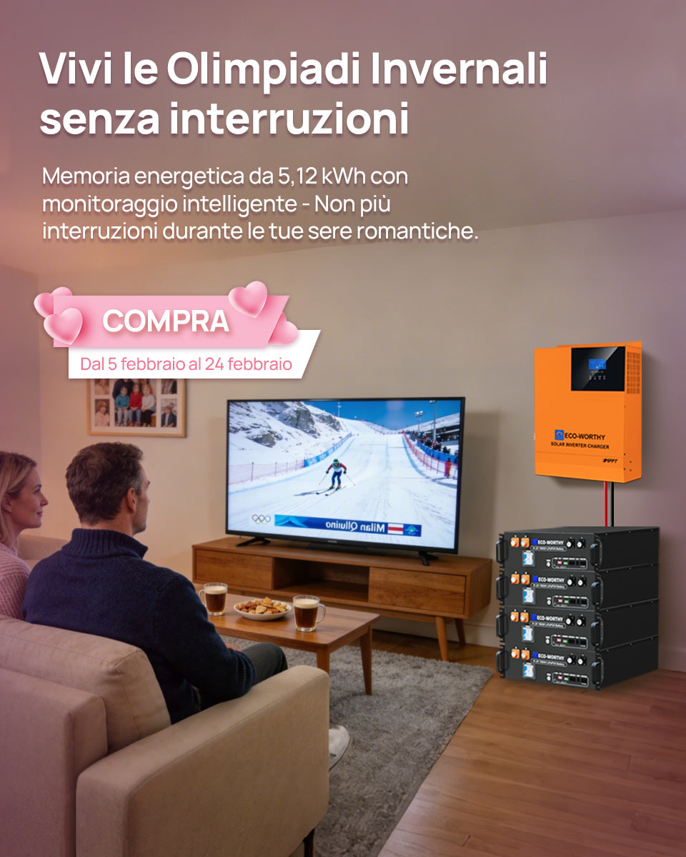 Batteria al Litio Ferro Fosfato da 48V 100Ah con Inverter Ibrido da 3000 W – Sistema di Alimentazione di Emergenza Domestico
