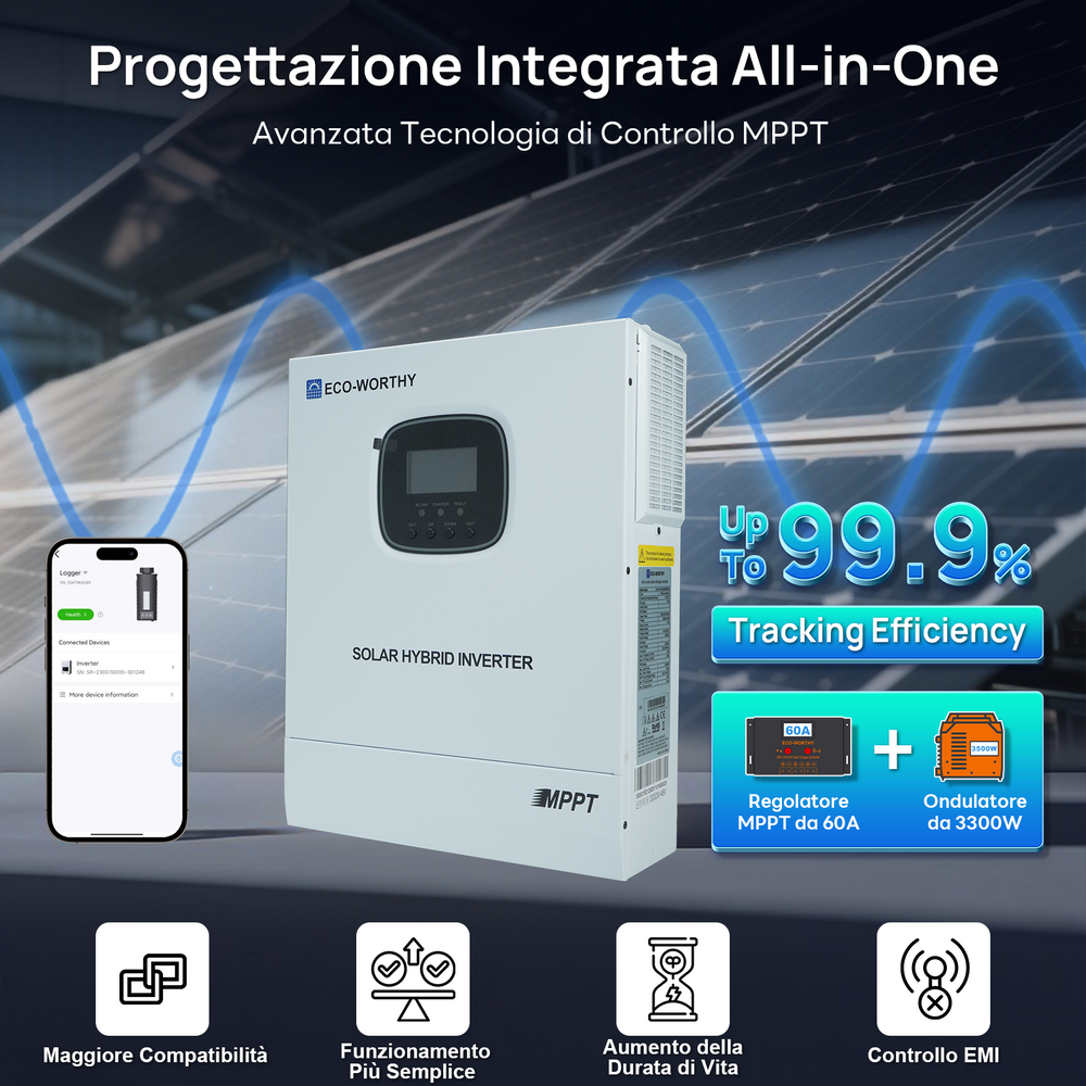 Inverter all-in-one integrato con inverter a onda sinusoidale pura da 3000W 48V e controller 60A
