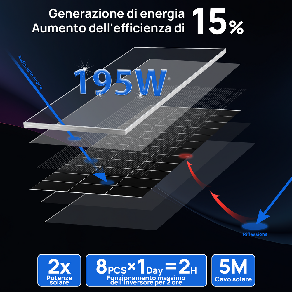 8 pannelli solari monofacciali bifacciali da 195 W