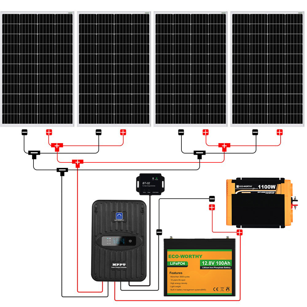 ECO-WORTHY 480 W 12V set completo di sistema solare off-grid può essere utilizzato per vari scopi. Comprese cabine, giardino e case mobili. Indipendentemente dallo scopo per cui viene utilizzato il kit, puoi stare certo che stai acquistando un sistema di qualità.