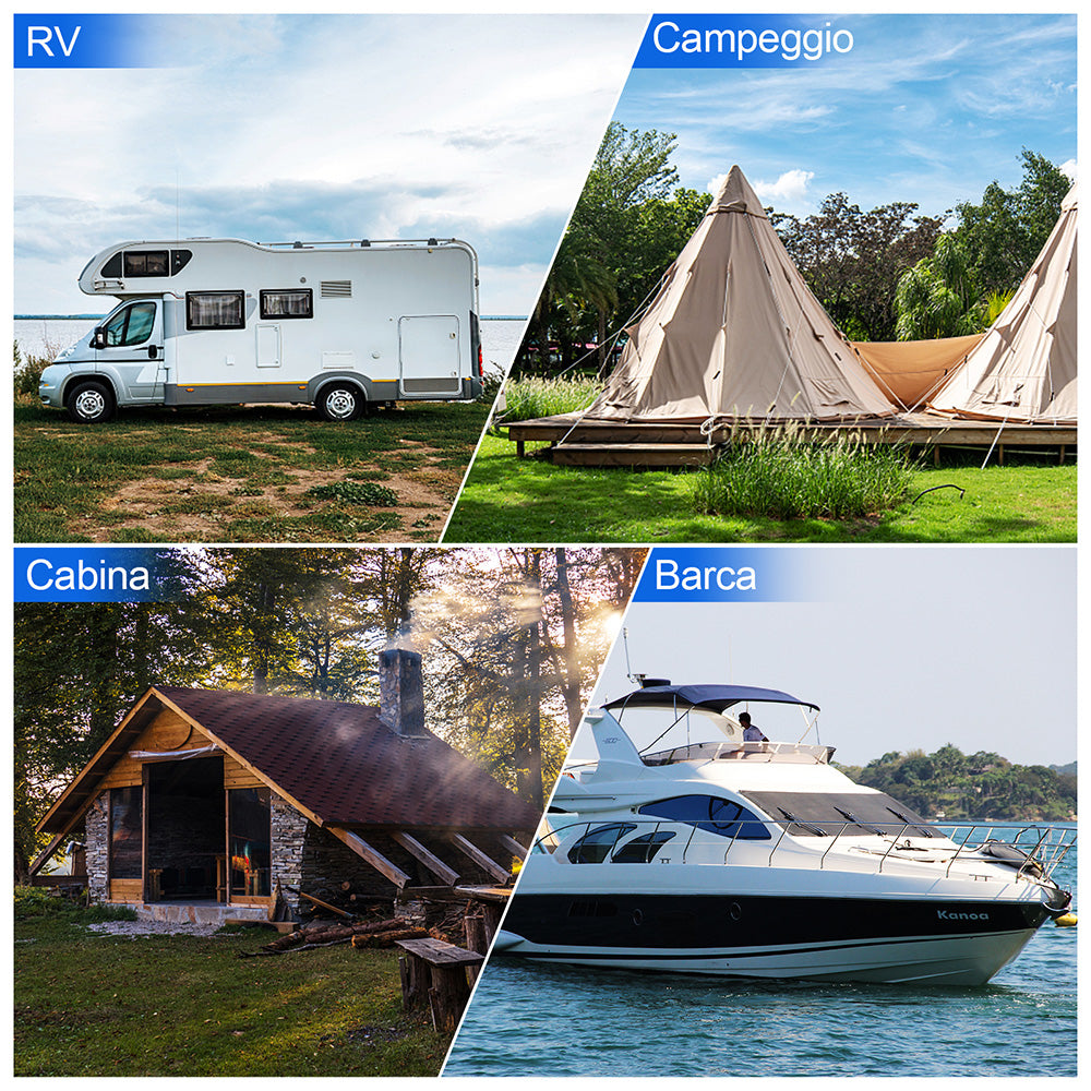 ·Display LCD e ventola intelligente: è possibile utilizzare il display per controllare il livello della batteria. Una ventola intelligente protegge l'inverter dal surriscaldamento.
