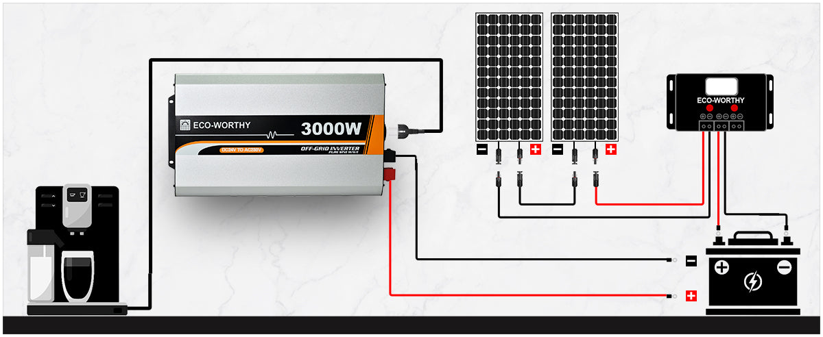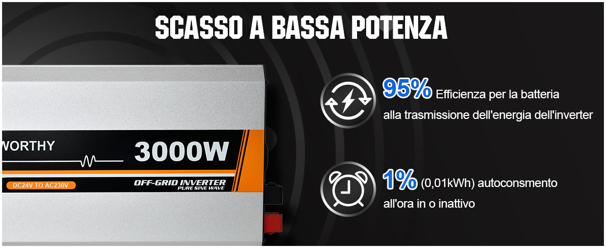 ECO-WORTHY Pure Sinus Inverter è un accessorio solare di alta qualità perfetto per i sistemi indipendenti dalla rete, tra cui cabine e piccole case. Un inverter è un dispositivo elettrico che converte la corrente continua immagazzinata in batterie in corrente di cambiamento domestico standard per l'elettronica di consumo. Come puro inverter del seno, può generare elettricità più pulita, più uniforme, più tranquilla e affidabile per gestire strumenti, ventole, luci e altri dispositivi elettronici senza dispositivi.