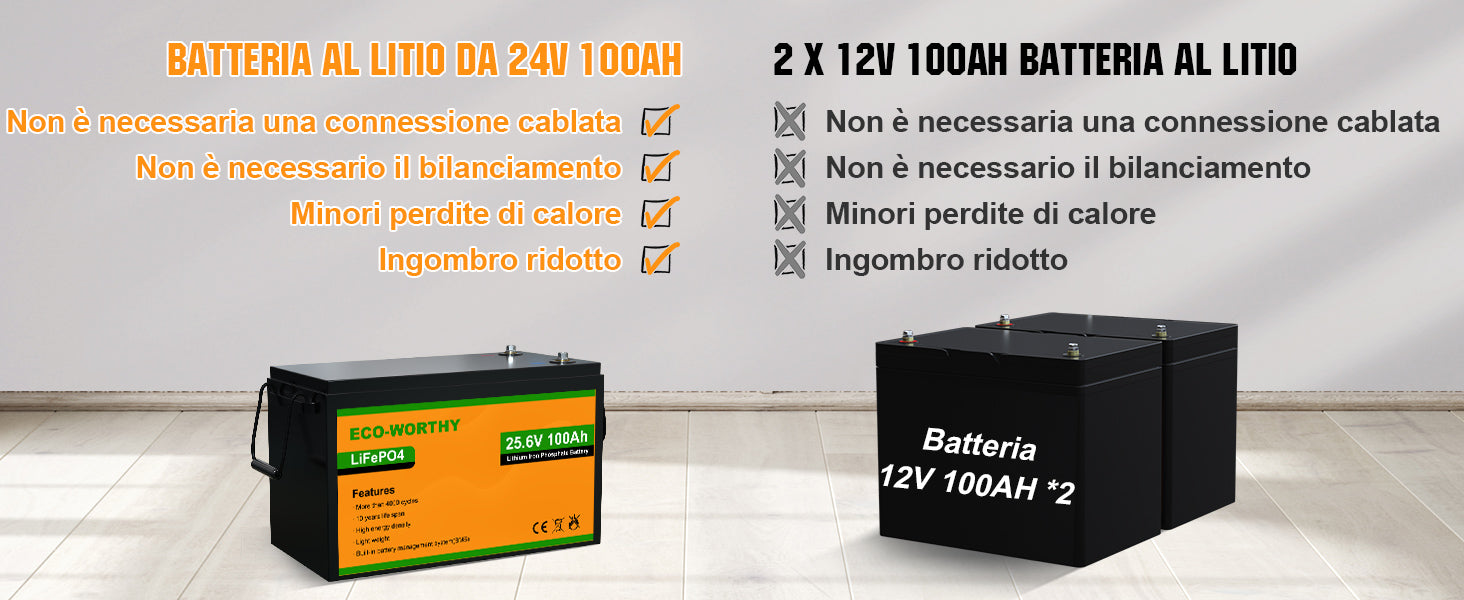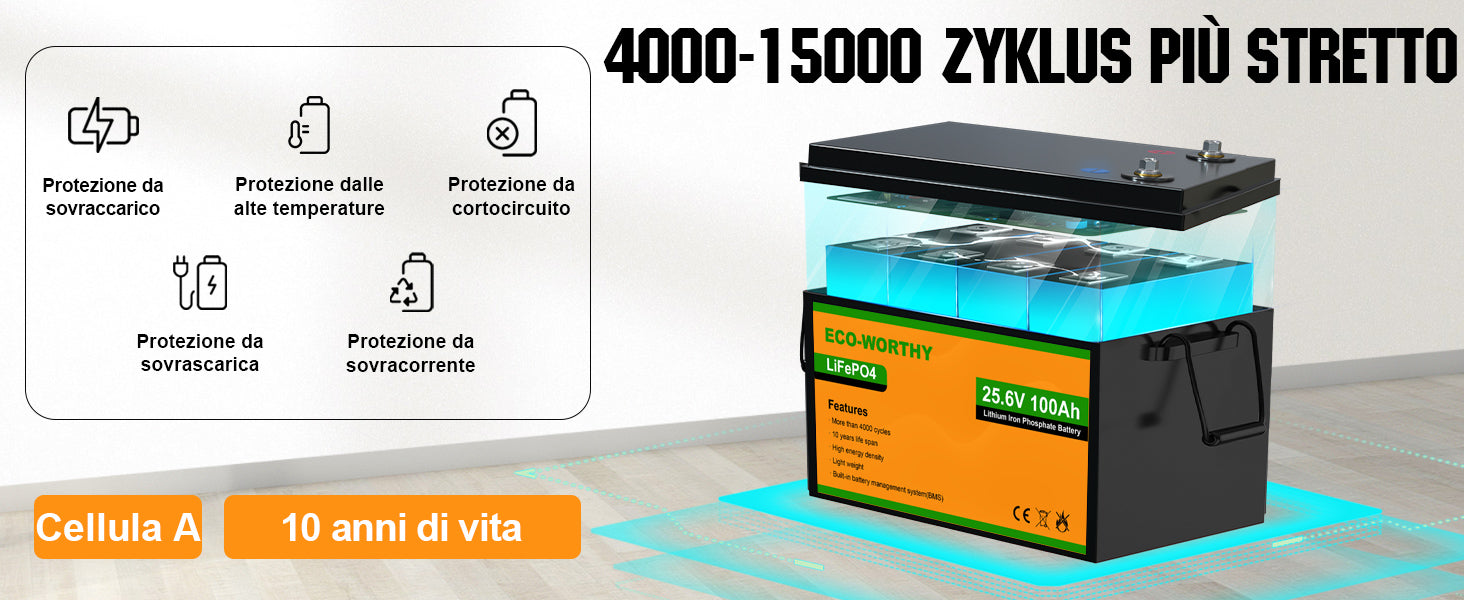 ·Campione della leggerezza: le batterie al litio pesano solo 1/3 delle batterie al piombo. Soprattutto per l'uso mobile o fisso con le massime esigenze.