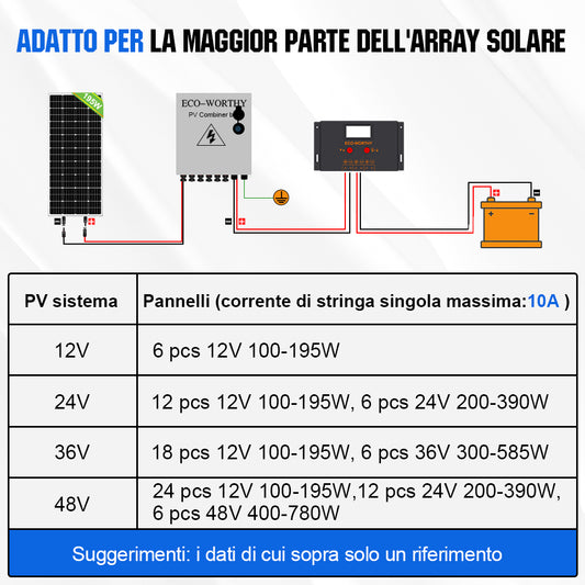 Combinatore fotovoltaico a 4 stringhe con interruttori automatici 4 * 10A