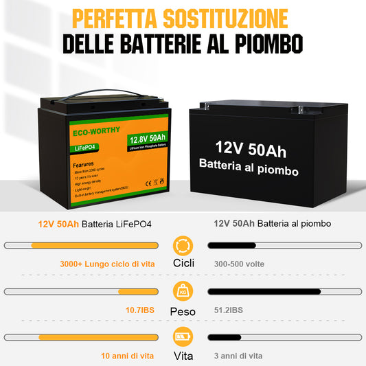 Eco-Worthy Batteria 12V 50Ah LiFePO4 con XT60, Bluetooth, BMS e protezione dalle basse temperature