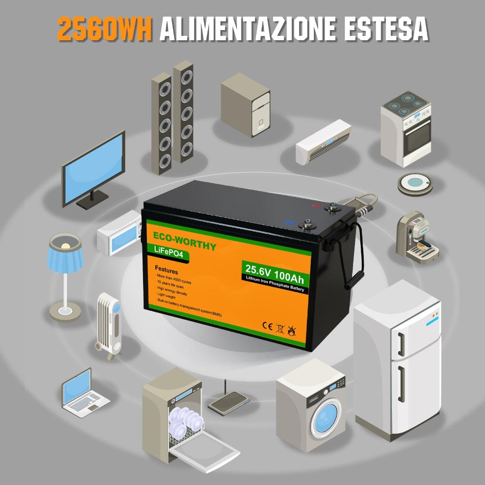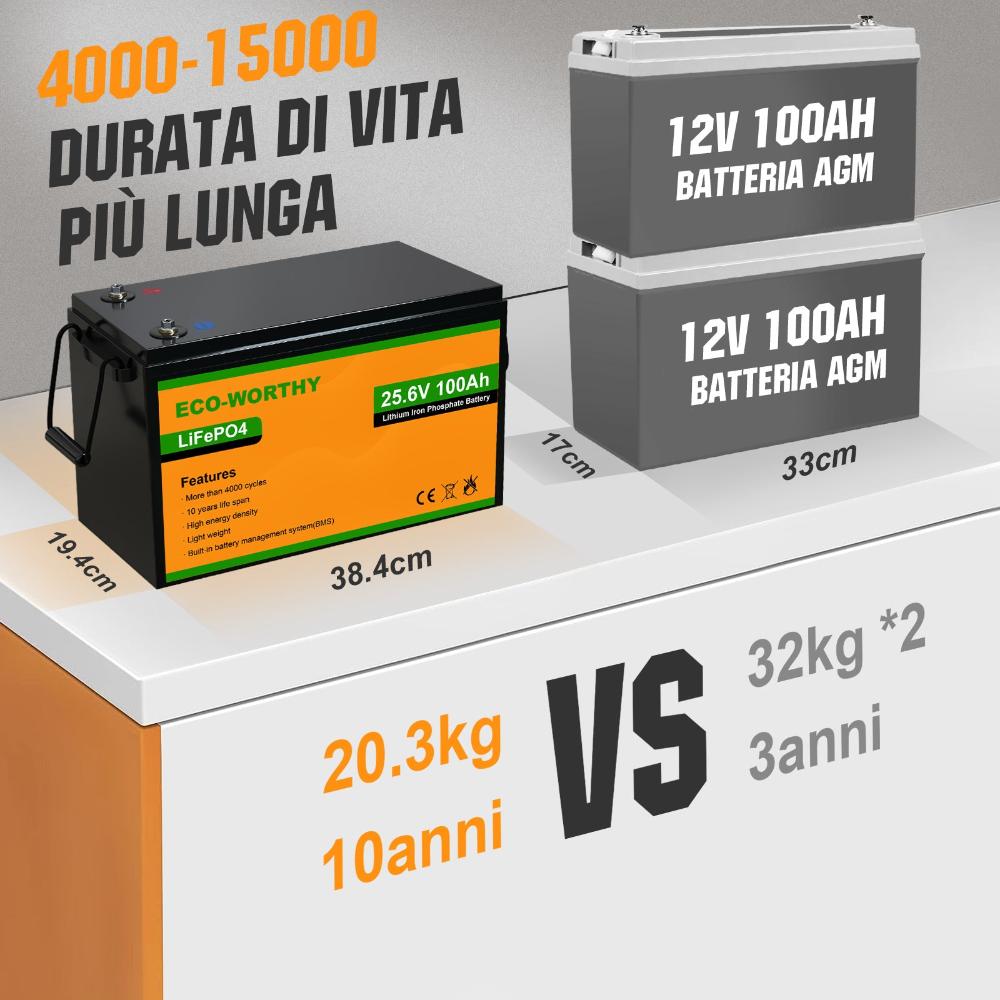 ·Campione della leggerezza: le batterie al litio pesano solo 1/3 delle batterie al piombo. Soprattutto per l'uso mobile o fisso con le massime esigenze.