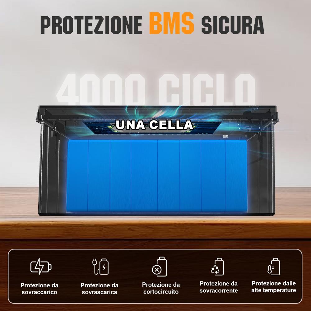 ·Assolutamente intrinsecamente sicure: le batterie LiFePO4 sono una delle fonti di alimentazione più sicure e affidabili sul mercato. La protezione BMS integrata garantisce un elevato livello di sicurezza per la batteria e l'utente.