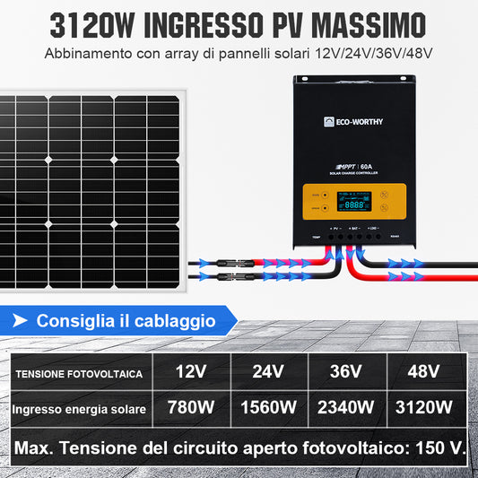 Caricatore solare MPPT 60A 12/24/36/48V