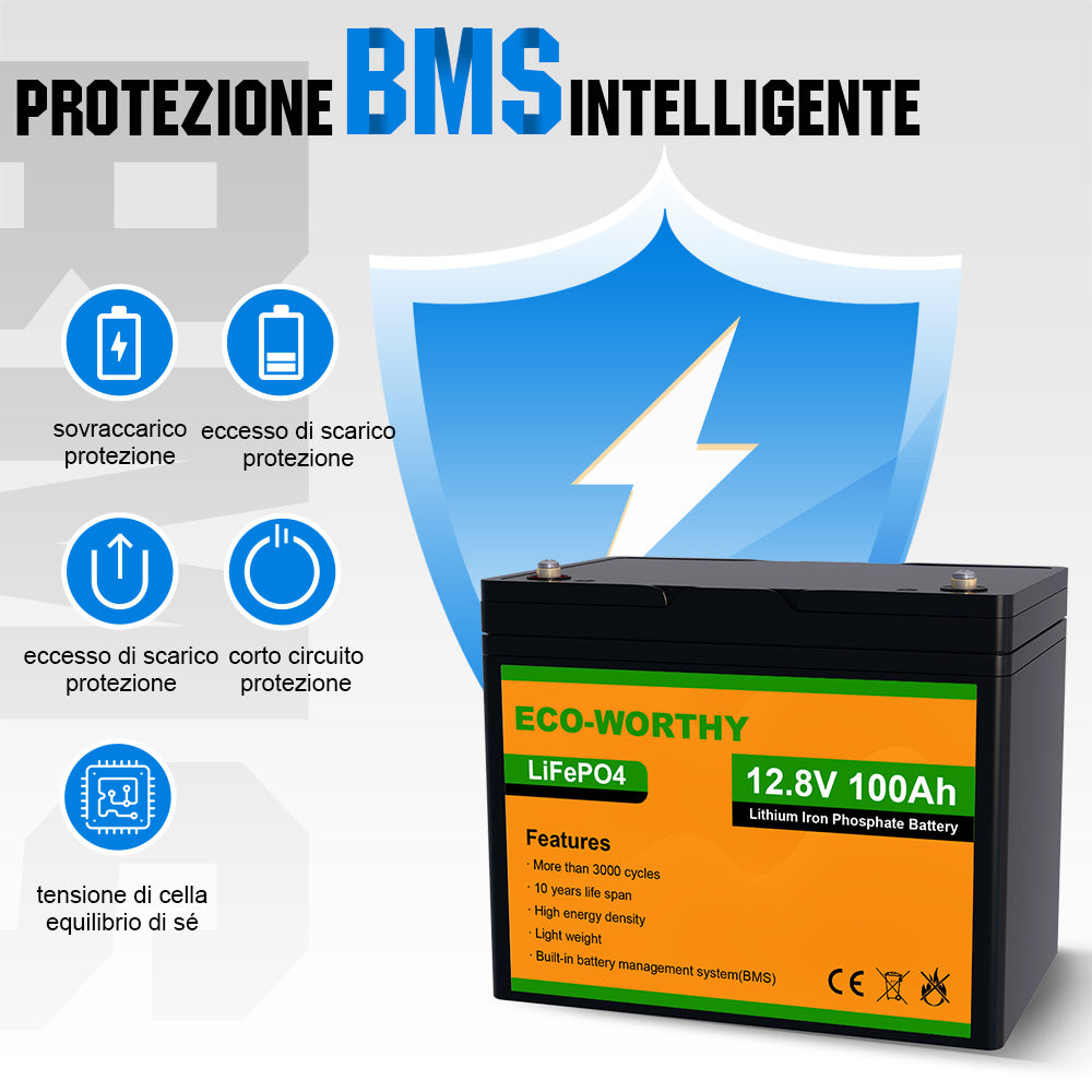 La batteria al litio ferro fosfato LiFePO4 12V 100AH ​​ad alta capacità ha il doppio della potenza, la metà del peso e dura 8 volte di più rispetto a una batteria al piombo-acido e ha anche un'aspettativa di vita significativamente più lunga. La batteria al litio può eseguire circa 4000 cicli con una profondità di scarica dell'80%.