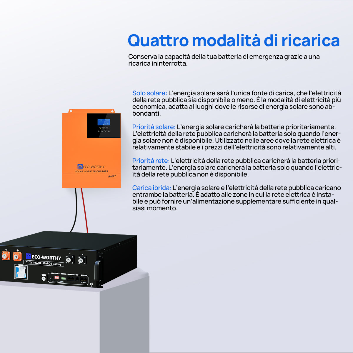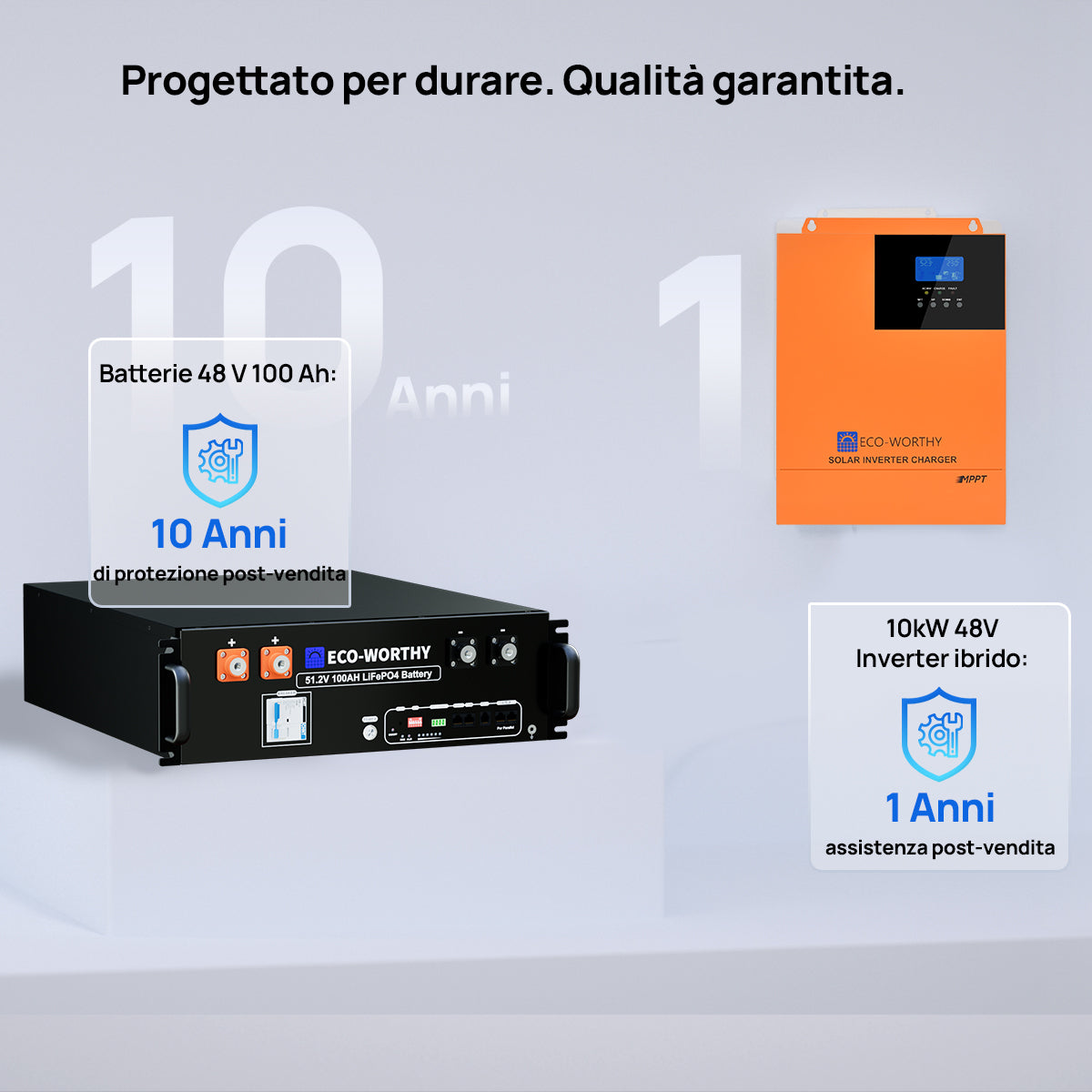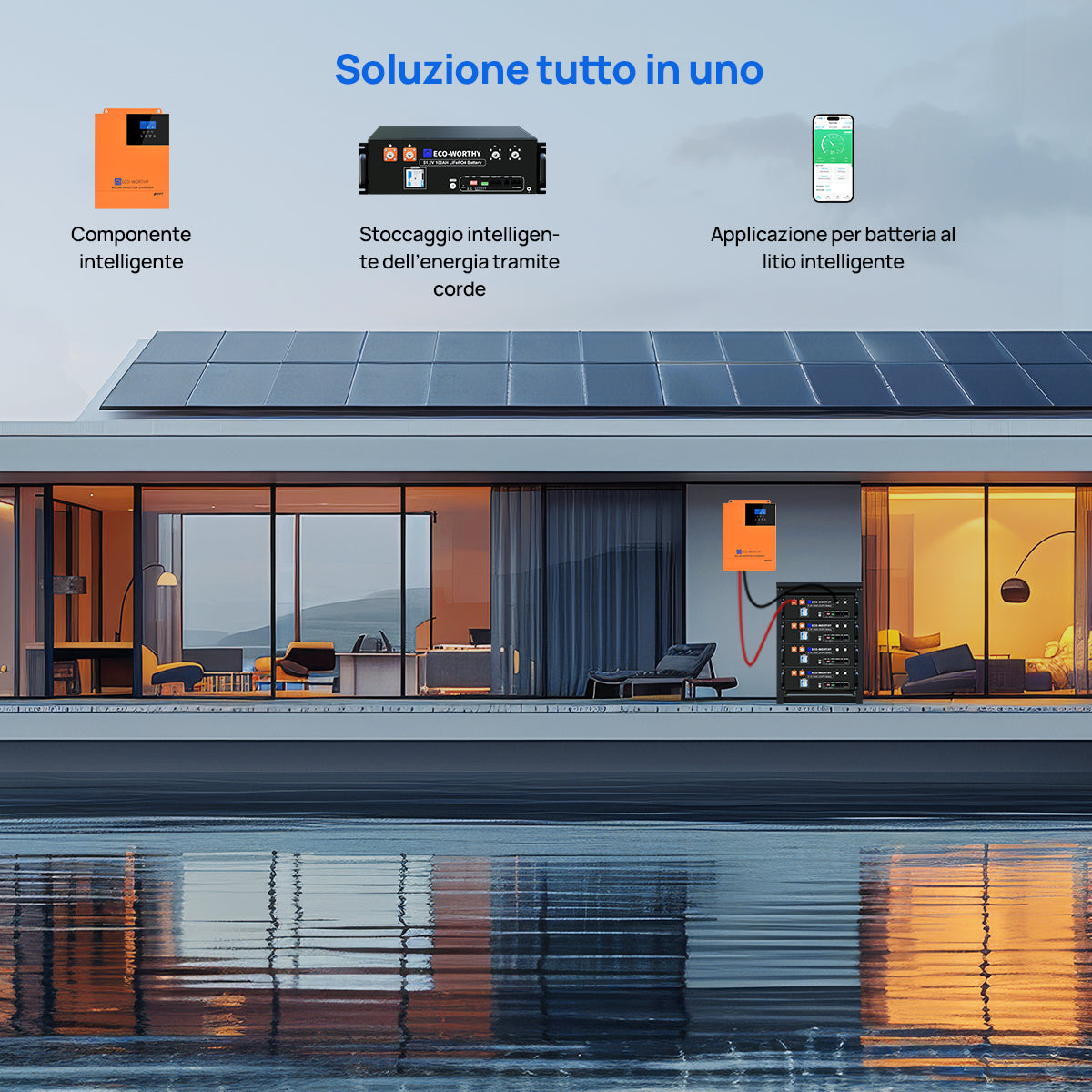 Batteria LiFePO4 da 48 V 100 Ah con controllo inverter da 5000 W tutto in uno – Kit di alimentazione di backup ECO-WORTHY