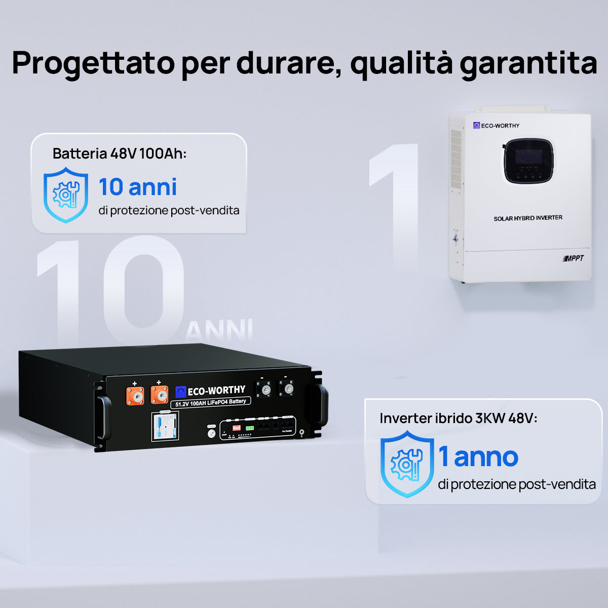 Sistema di alimentazione di emergenza residenziale con batteria LiFePO4 da 48V 100Ah e inverter ibrido da 48V 3000W