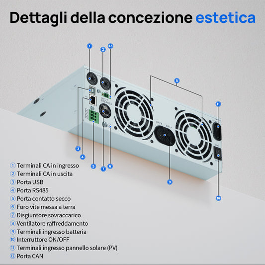 ECO-WORTHY Inverter/Caricabatterie Solare All-in-One 48V 3000W | MPPT 60A, Ingresso FV 3400W