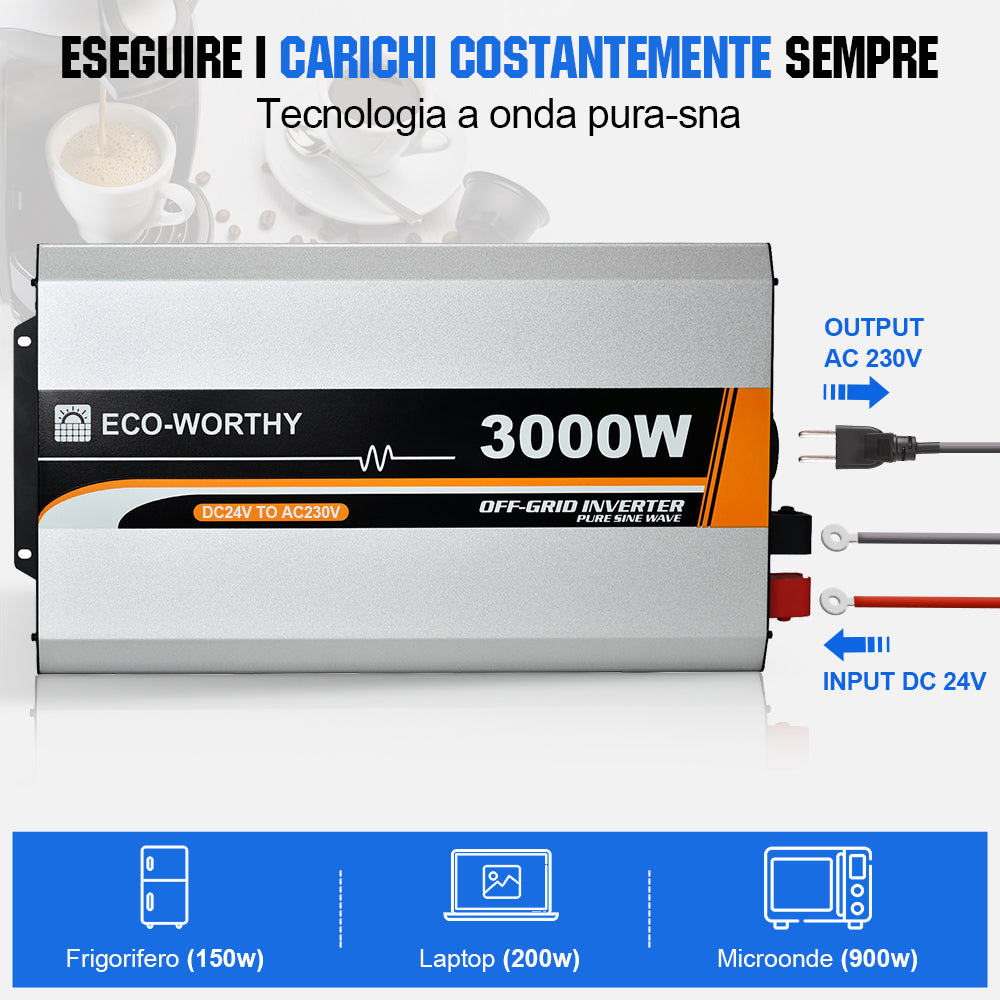 Inverter a onda sinusoidale pura da 3000W Off Grid da 24V a 220V