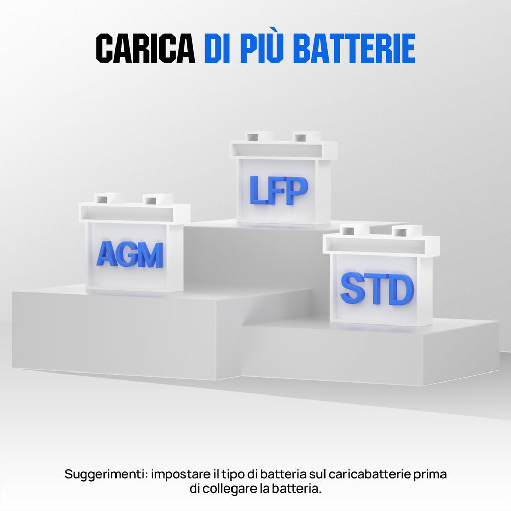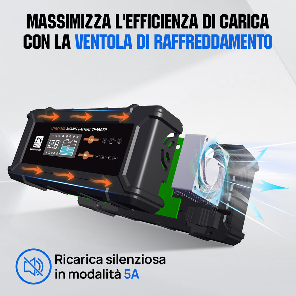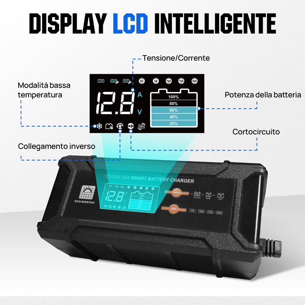 Caricabatterie intelligente 20A 12V/24V con display LCD per la maggior parte delle batterie