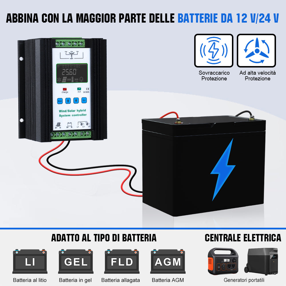 Generatore Eolico 400W 12V/24V con Controller Ibrido 40A
