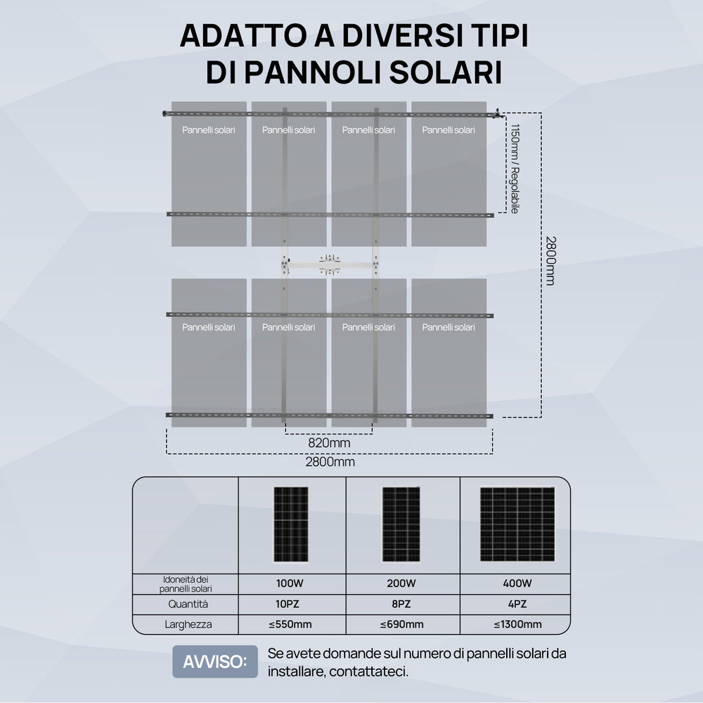 Compatibilità universale: Funziona con la maggior parte dei pannelli solari standard e supporta configurazioni di grandi quantità: 10 x 100 W, 8 x 200 W o 4 x 400 W, con un'eccellente stabilità per soddisfare tutte le tue esigenze energetiche.