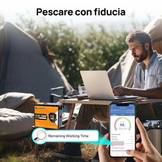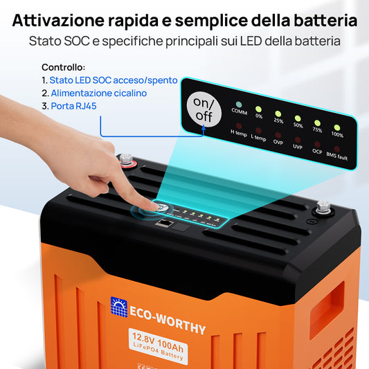 Batteria al litio LiFePO4 12V 100Ah con Bluetooth e protezione dalle basse temperature