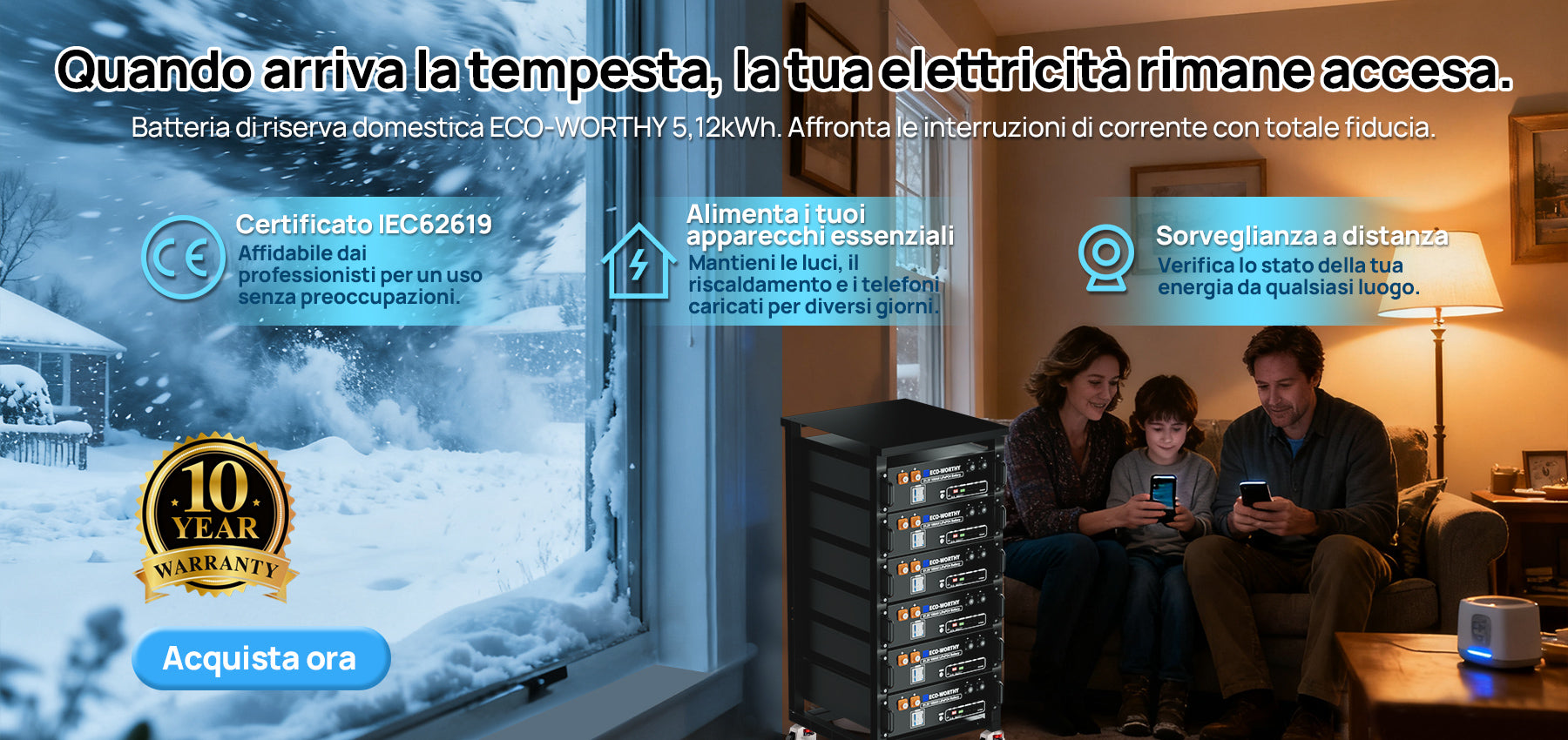 Batterie LifePO4 premium ECO-WORTHY Batteria al litio 12V 100Ah LiFePO4 Batteria al litio 12V 100Ah LiFePO4 con Bluetooth Batteria al litio 12V 50Ah LiFePO4 Batteria al litio 12V 30Ah LiFePO4...