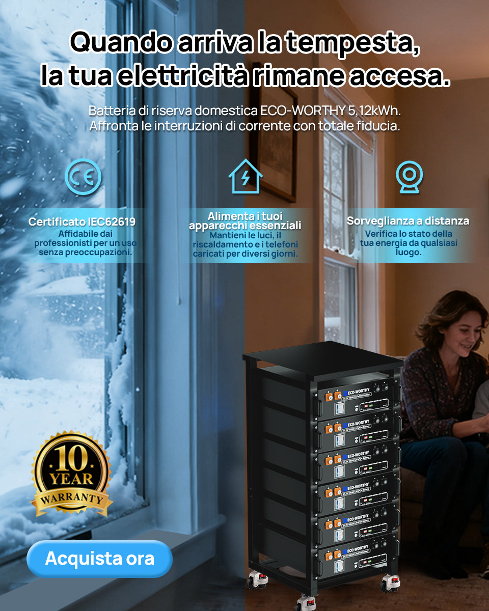 Capacità fino a 163,84 kWh: compatibile con la maggior parte degli inverter | Garanzia di 10 anni