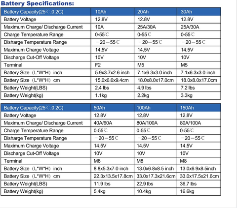 Una batteria al piombo da 100 Ah Peso: 61,7 libbre, Dimensioni: 12,8 * 8,46 * 6,61 pollici. Ma il peso della batteria al litio è di 22,9 libbre, dimensioni: 12 * 6,8 * 8,5 pollici, molto più piccolo e leggero.