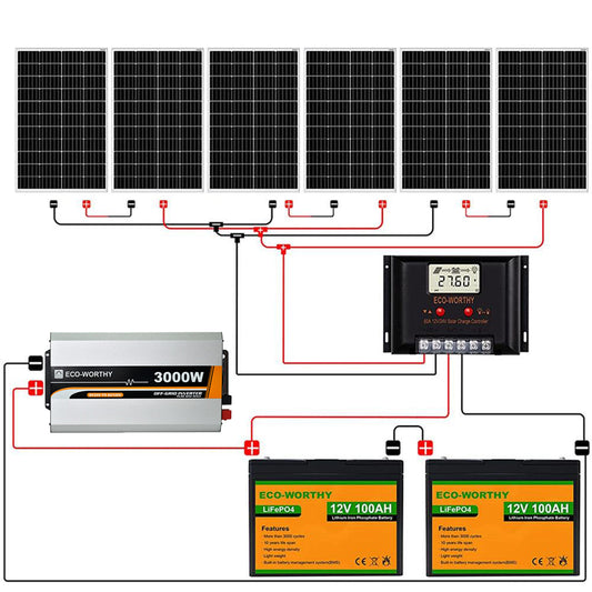 1000W 24V (6x170W) Sistema solare MPPT completo con memoria al litio da 2.4kWh+inverter da 3kW