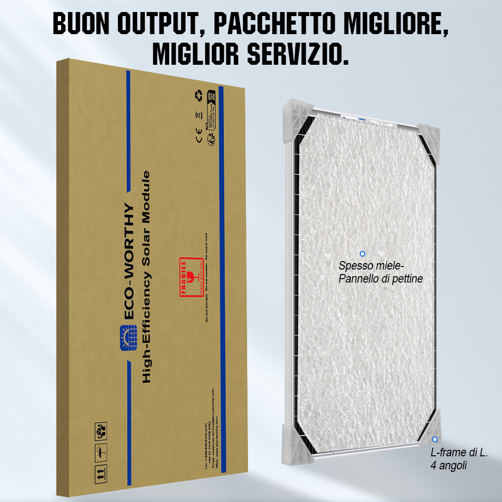 ·Servizi post-vendita: in qualità di produttore professionale di sistemi solari, ogni volta che riscontri problemi, il servizio pannelli solari ECO-WORTHY ti fornirà attivamente soluzioni professionali per sistemi off-grid entro 24 ore.