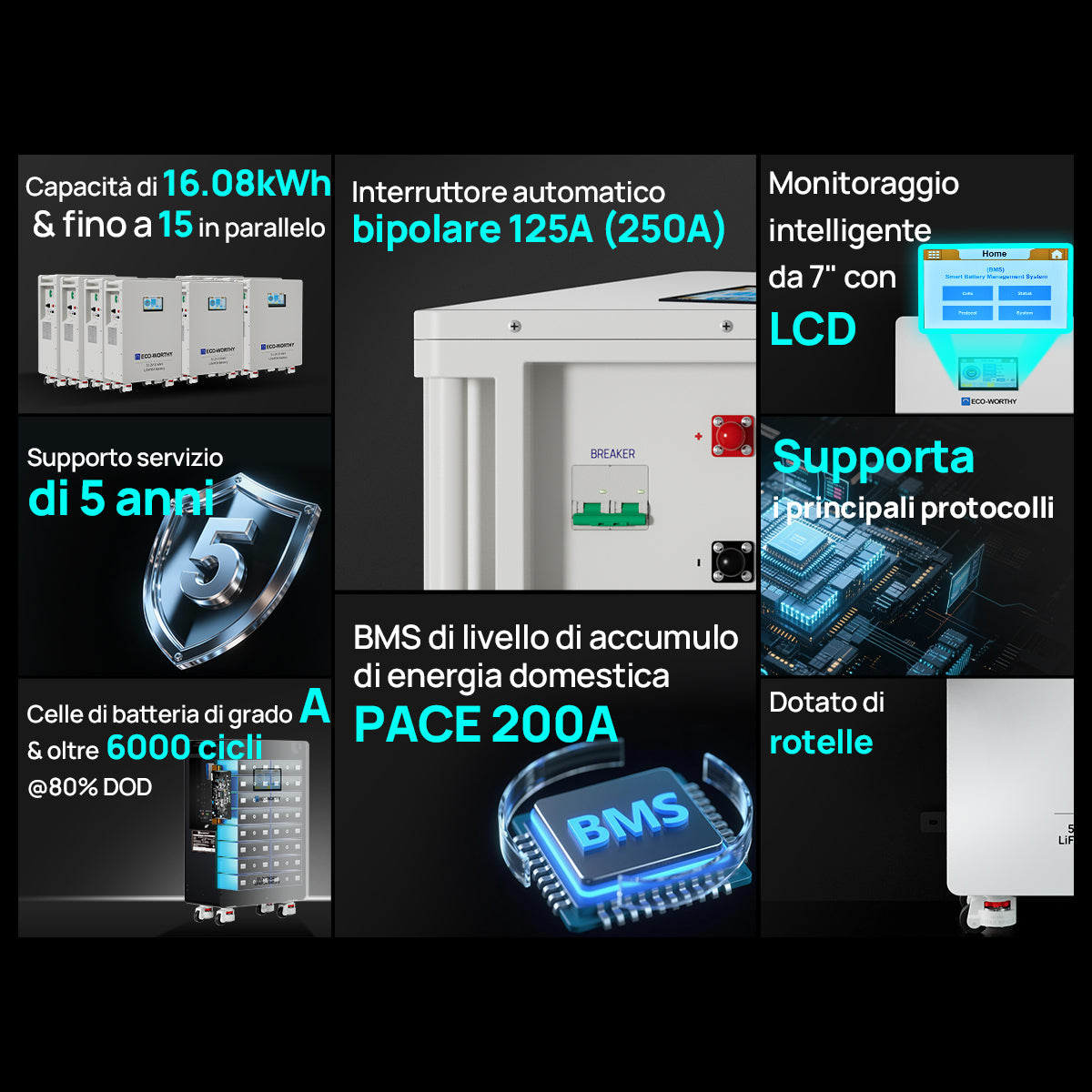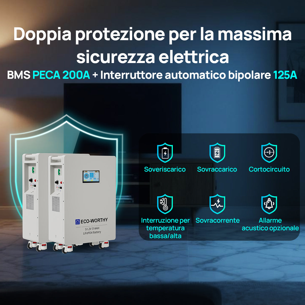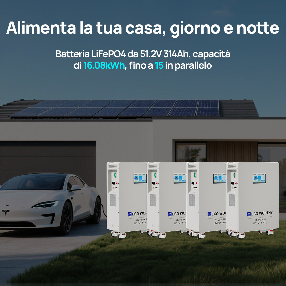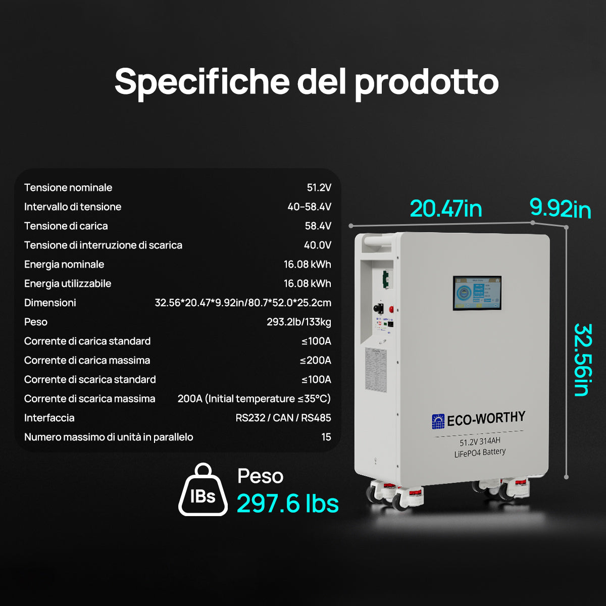 Batteria di Backup Solare LiFePO4 48V 314Ah ECO-WORTHY per Montaggio a Parete Domestico