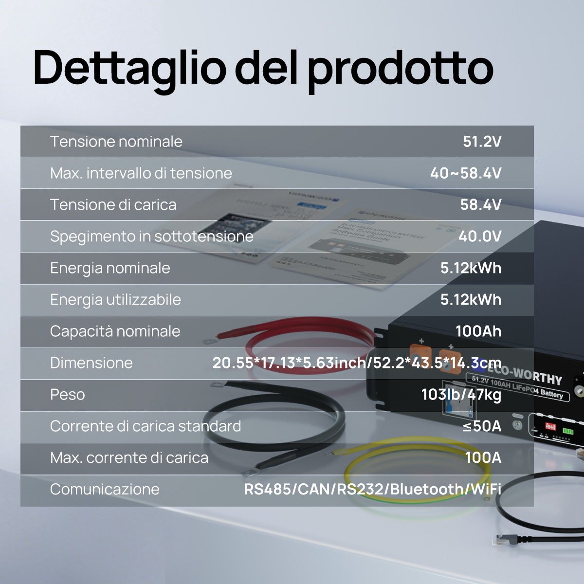 | Capacità della batteria: 100Ah | Potenza della batteria: 5120Wh |