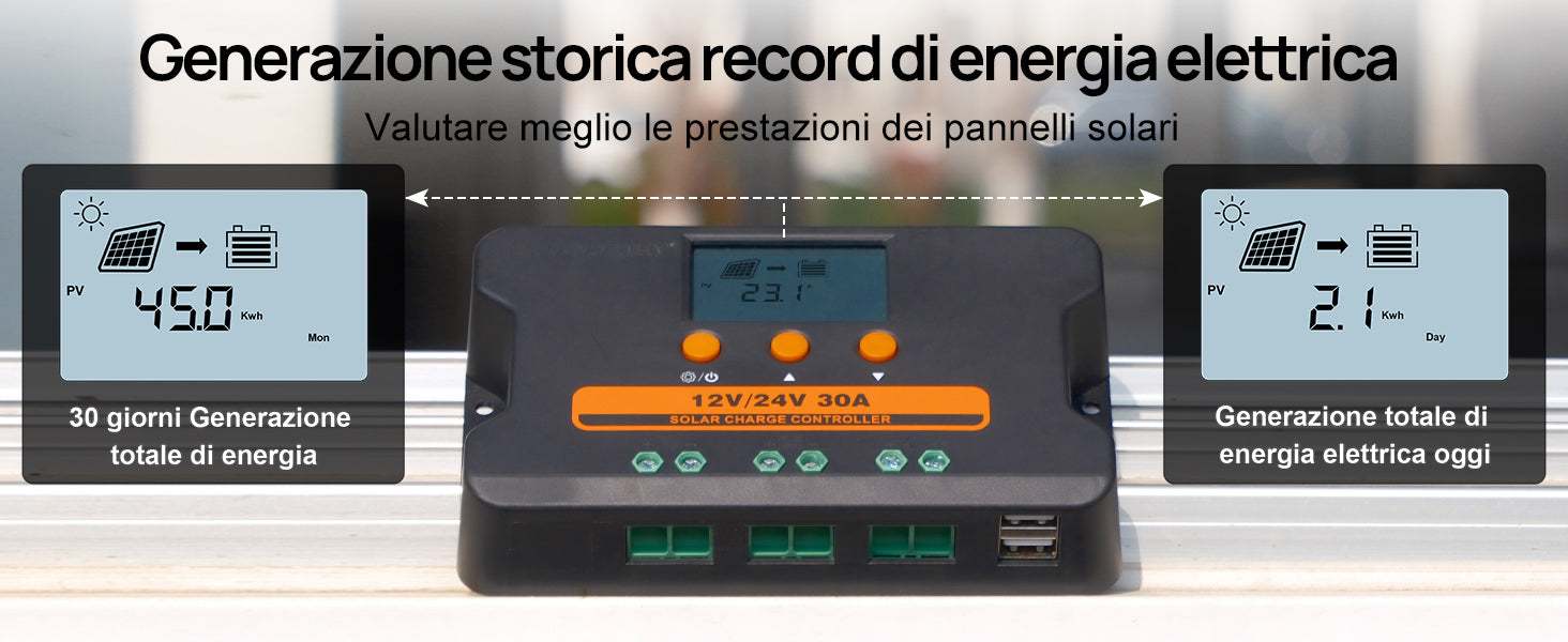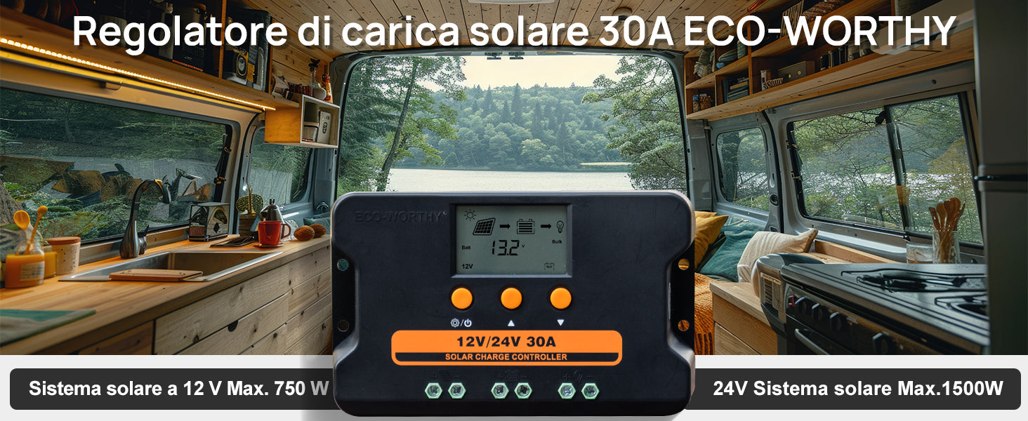 Caricatore solare PWM 30A 12V/24V aggiornato