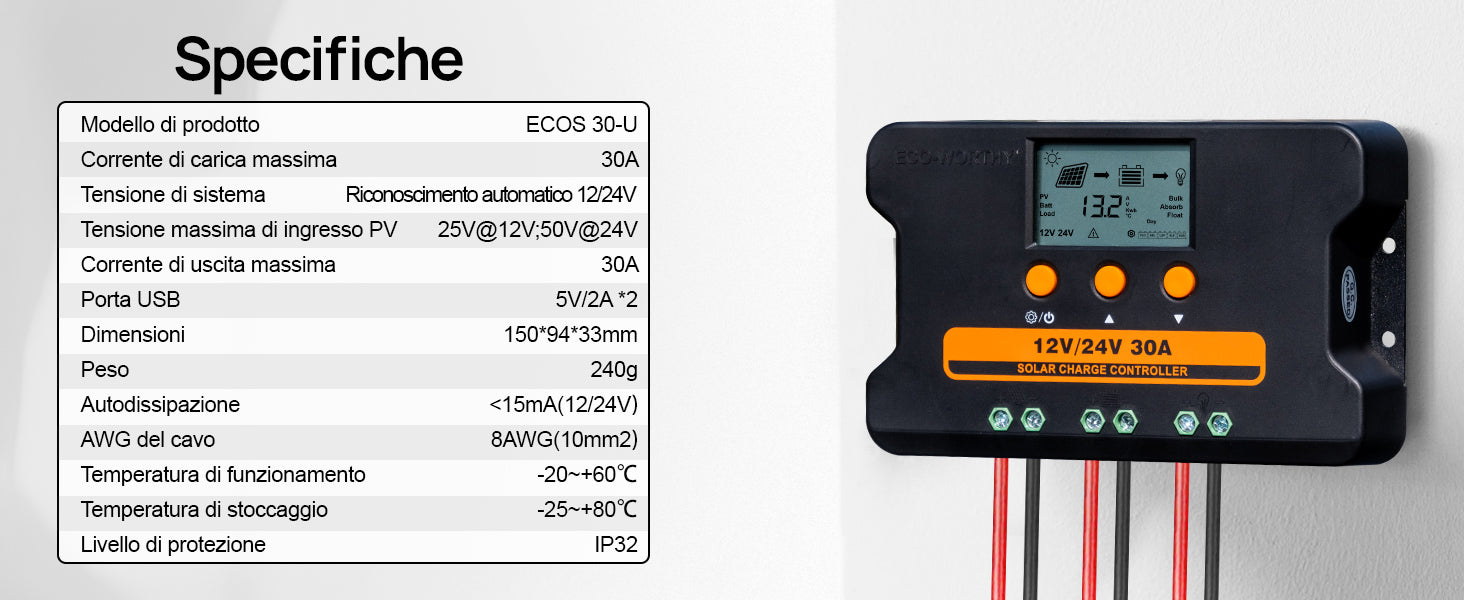Corrente di carica massima: 30A | Corrente di scarica: 30A |